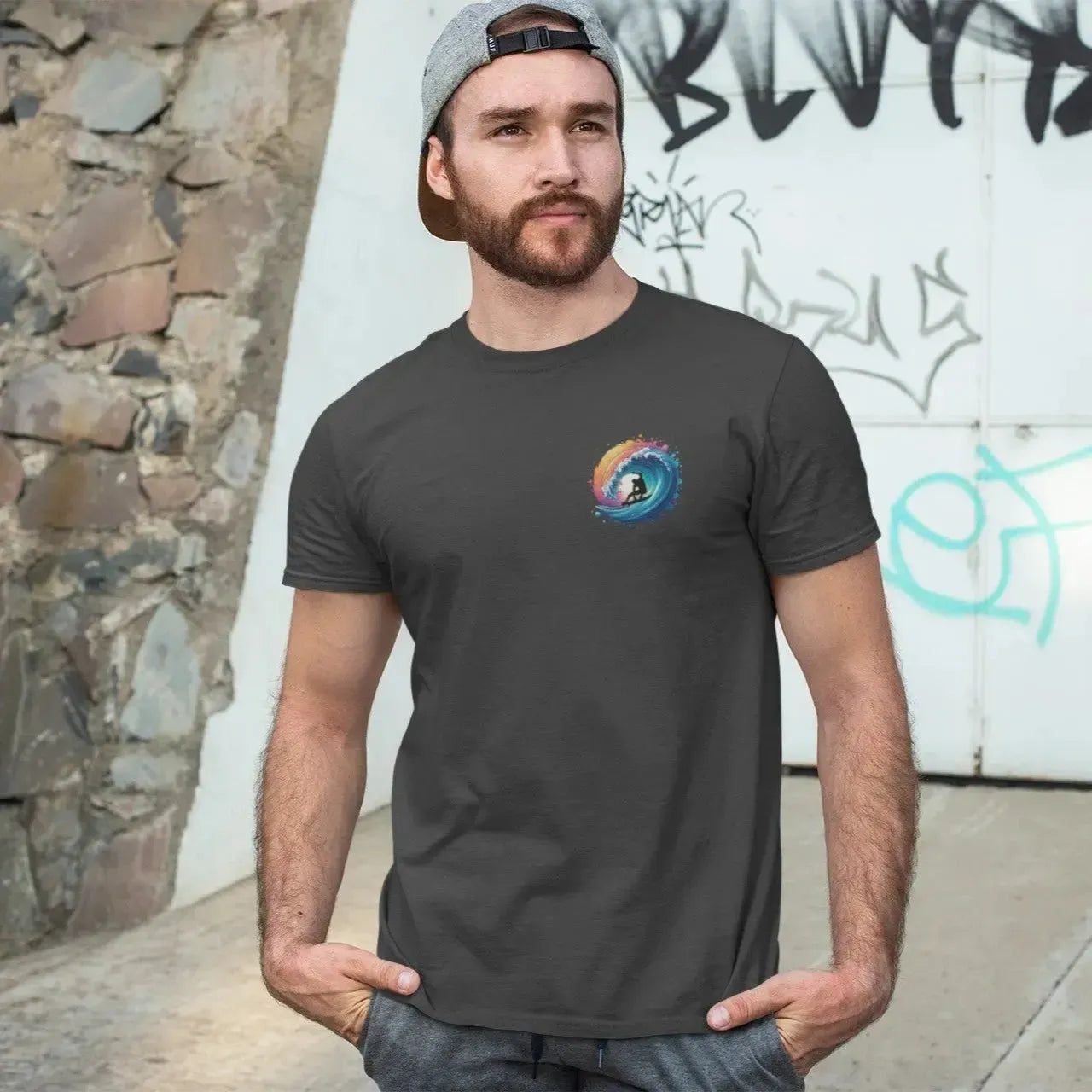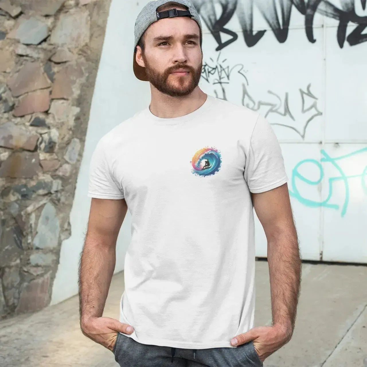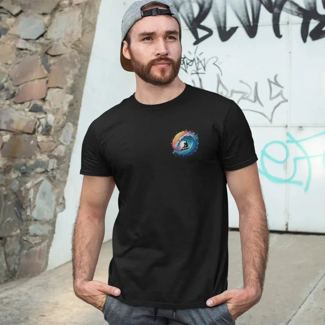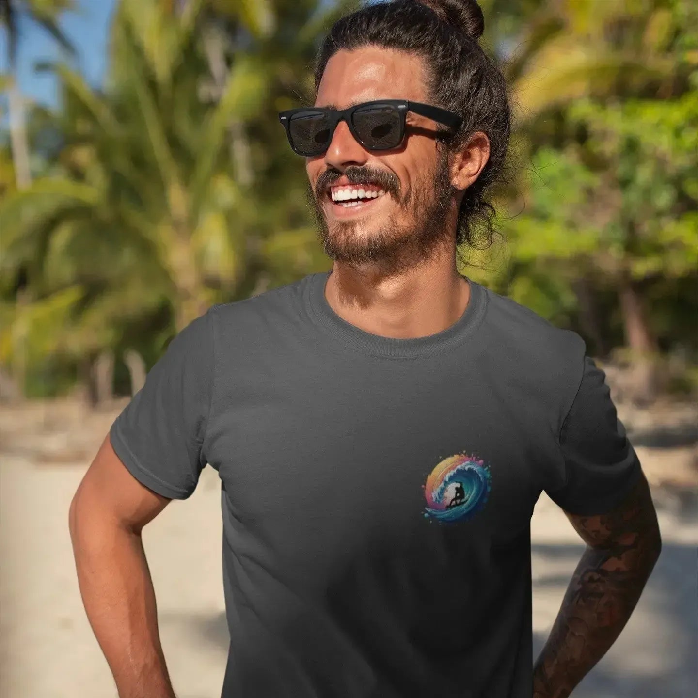 Colorful Surfer Wave T-Shirt – Vibrant Sunset Splash Graphic Tee | Retro Surf Style Shirt
