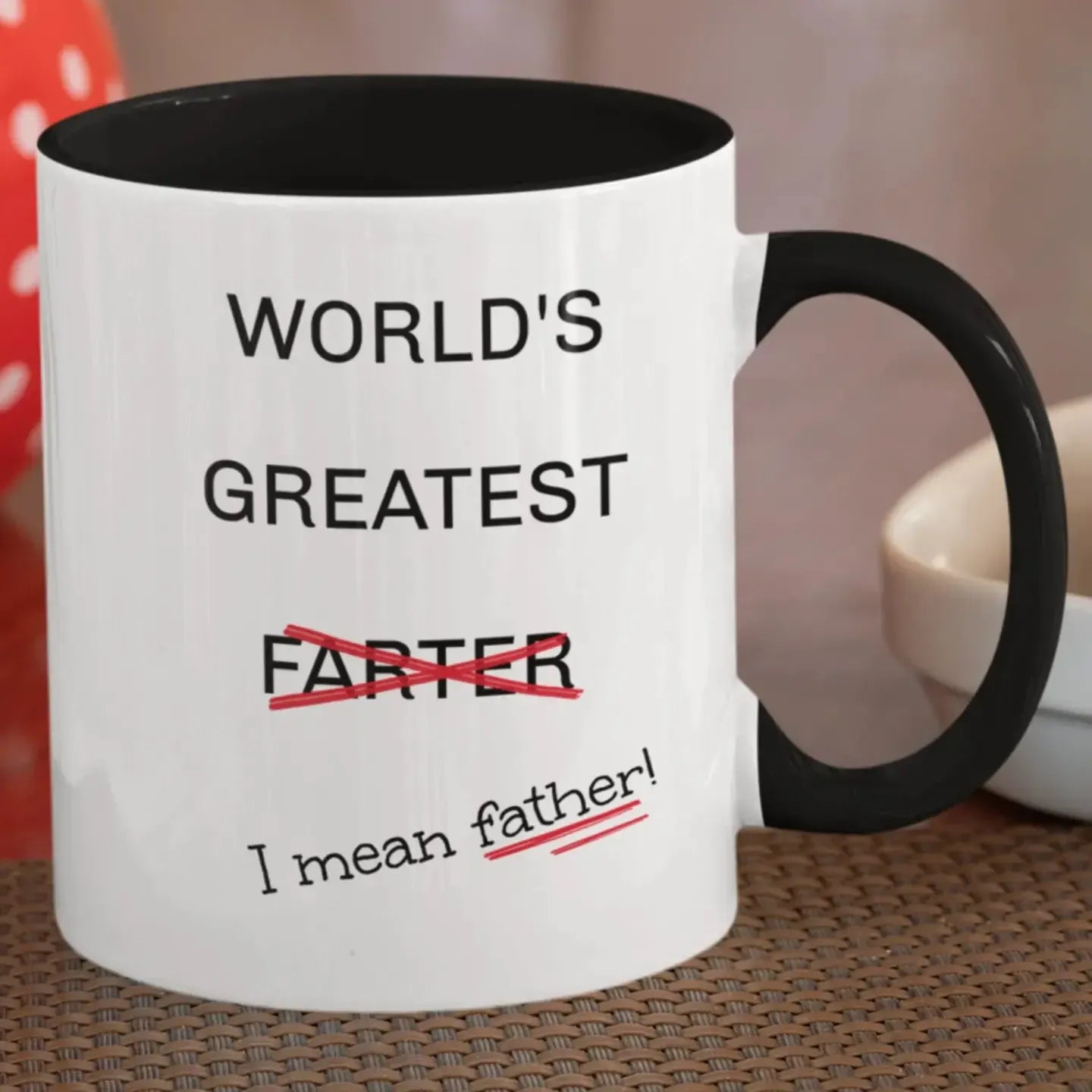 World’s Greatest Farter I Mean Father Mug – Funny Dad Gift, Father’s Day Coffee Cup, Joke Gift for Him